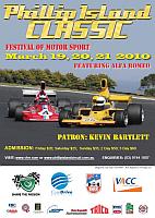 An early start saw 40 entrants cars register in Tooradin for the cruise to the 2010 Festival of Motorsport at the Phillip Island GP circuit. Well 41 if you count the 1935 'A' Model engined Speed Car that Warren Evans trailered behind his Chevy pick up. On arrival, the convoy was ushered into the prime parking location right on the fence just in time to catch the action from 34 F5000 open wheelers performing a rolling start. The sound rivaled a pair of nitro fuellers. The action on the track at this event is non-stop and when you need some exercise the short walk across the track bridge has you in the pit area where displays of racing cars from all era's makes and styles were on show. Where else in the world can you walk up to people with household names such as Sir Jack Brabham and Bob Jane and chat about their famous cars. Rod Hadfield also exhibited his new project, the Warman Special in the EXPO building. It was like watching bees around the honey pot. Better was to come when Rod & Carol were invited to join the parade lap of rare and exotic racing cars led off by the $20 million Alfa Romeo F1. Amazing is the only word to describe what it looked & sounded like as it went past down the main straight.